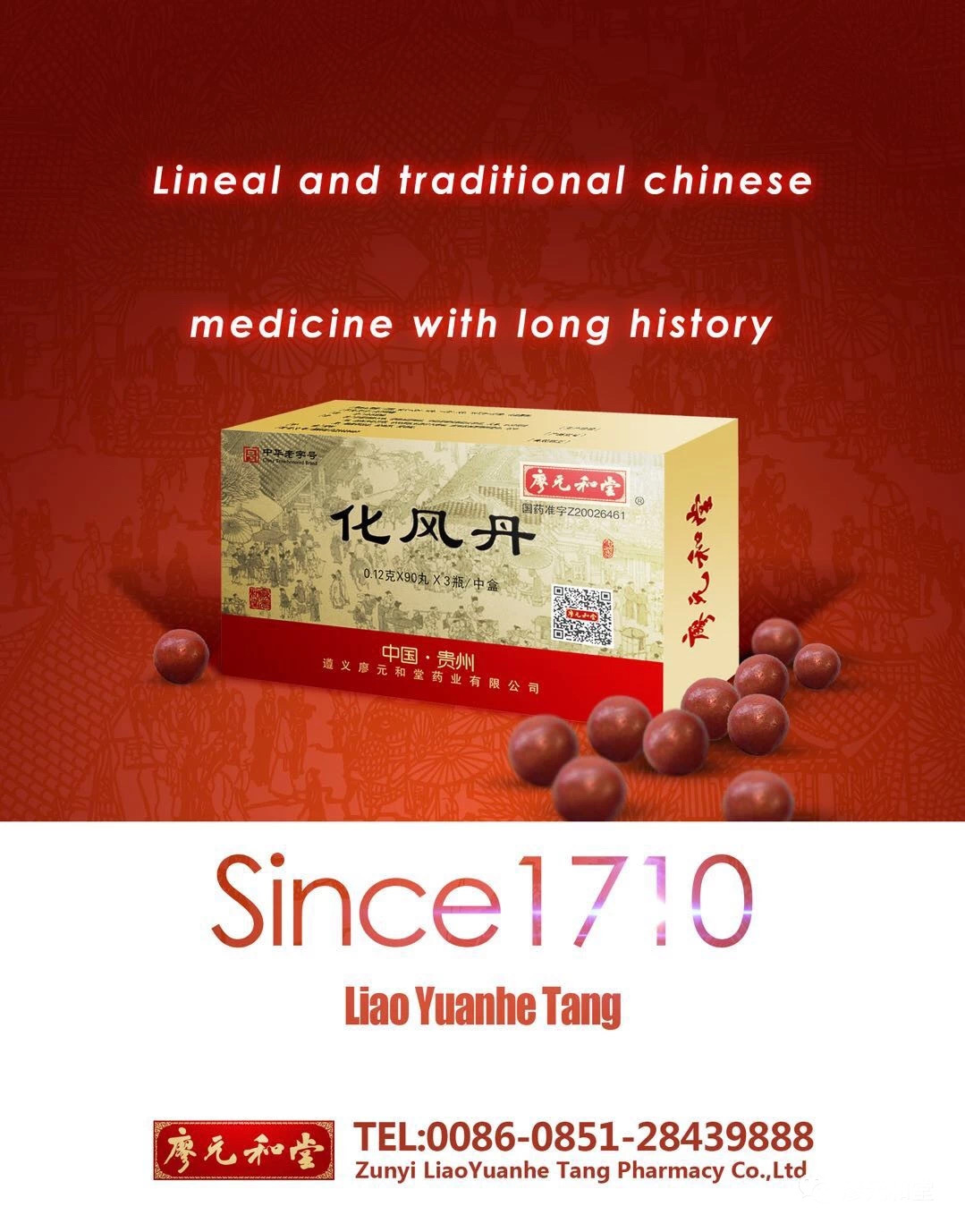 遵義廖元和堂藥業(yè)有限公司(以下簡(jiǎn)稱(chēng)“廖元和堂”)始創(chuàng )立于1710年,位于遵義市深溪鎮復興村 “醫藥健康產(chǎn)業(yè)園”,占地122畝,正式員工近400人。是一家具有300余年歷史的“中華老字號”企業(yè),也是經(jīng)國務(wù)院批準(文件:國發(fā) 〔2008〕 19 號)進(jìn)入首批非物質(zhì)文化遺產(chǎn)擴展項目名錄傳統醫藥項。同時(shí),祖傳“化風(fēng)丹制作技藝”具有300多年的發(fā)展歷史,十余代子孫的傳承,成形的制作技藝,為我國中成藥在提高藥性、降低毒性的方法處理上,提供了獨特的思路,具有工藝創(chuàng )新價(jià)值。2018年7月13日,廖元和堂《品質(zhì)》欄目開(kāi)機儀式在貴州遵義隆重舉行。經(jīng)過(guò)長(cháng)達數月的層層篩選,廖元和堂化風(fēng)丹獨有的制作技藝、立竿見(jiàn)影的療效和節節攀升的銷(xiāo)量,得到了央視《品質(zhì)》欄目組的高度認可,從眾多同行中脫穎而出,成功入圍此欄目。并且榮登紐約時(shí)代廣場(chǎng)納斯達克大屏幕,展示了其品牌形象,也向大眾展現了中華老字號品牌的強大實(shí)力。